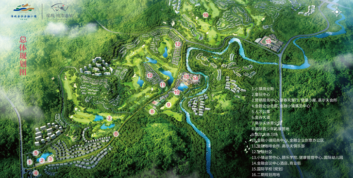 桃李春风依山傍水,倡导“产城”融合概念,规划两心、四园、八大核心功能,涵盖中西式院墅、生态公寓、金融产业服务平台、创意办公、温泉酒店、小镇中心等多种业态。